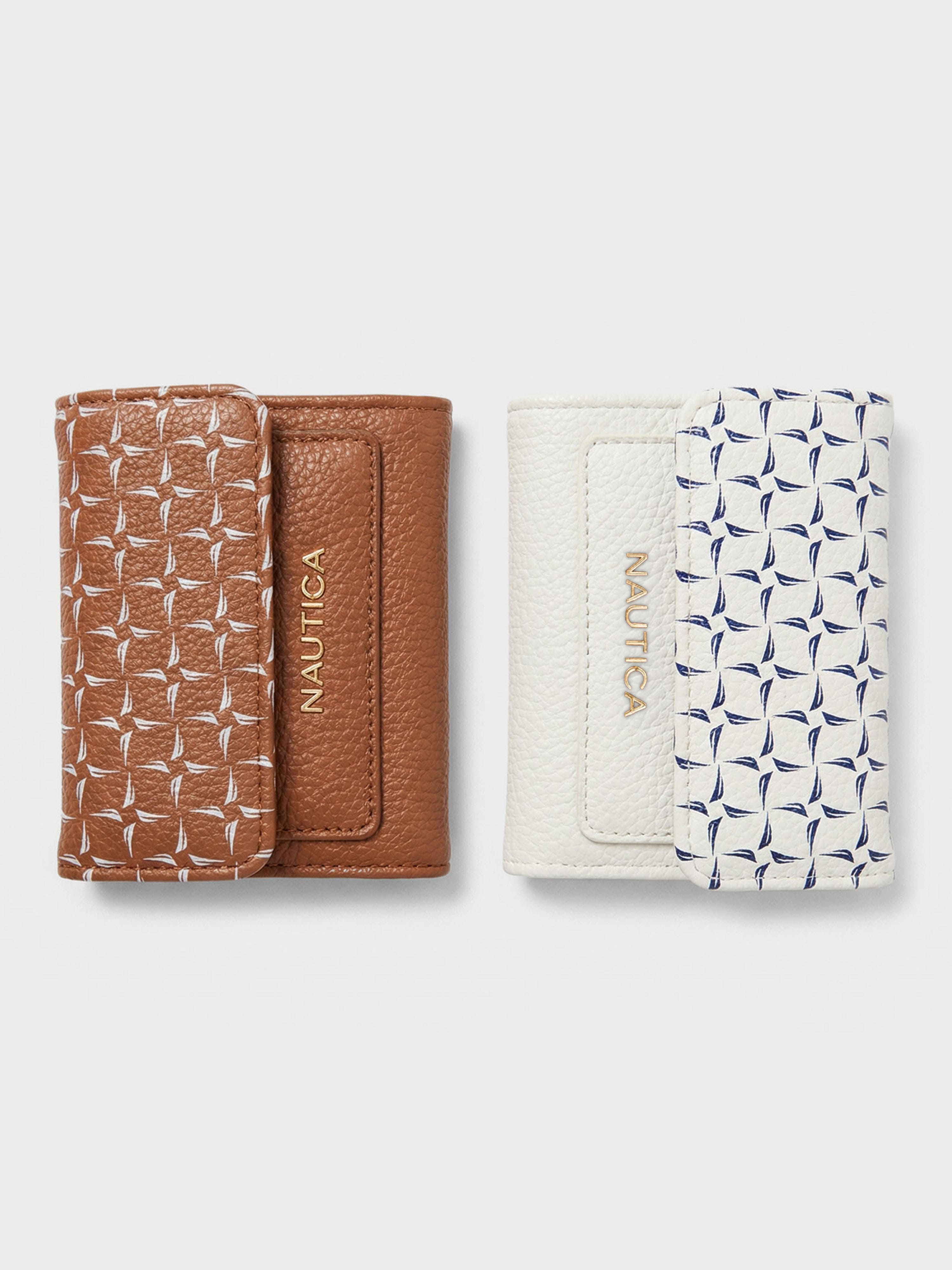This trifold wallet is defined by the signature windmill monogram J-class pattern on the flap, giving it a distinctive nautical look. Designed with an easy flap closure, this accessory offers efficient organization in a small silhouette, perfect for keeping your essentials secure with modern elegance.