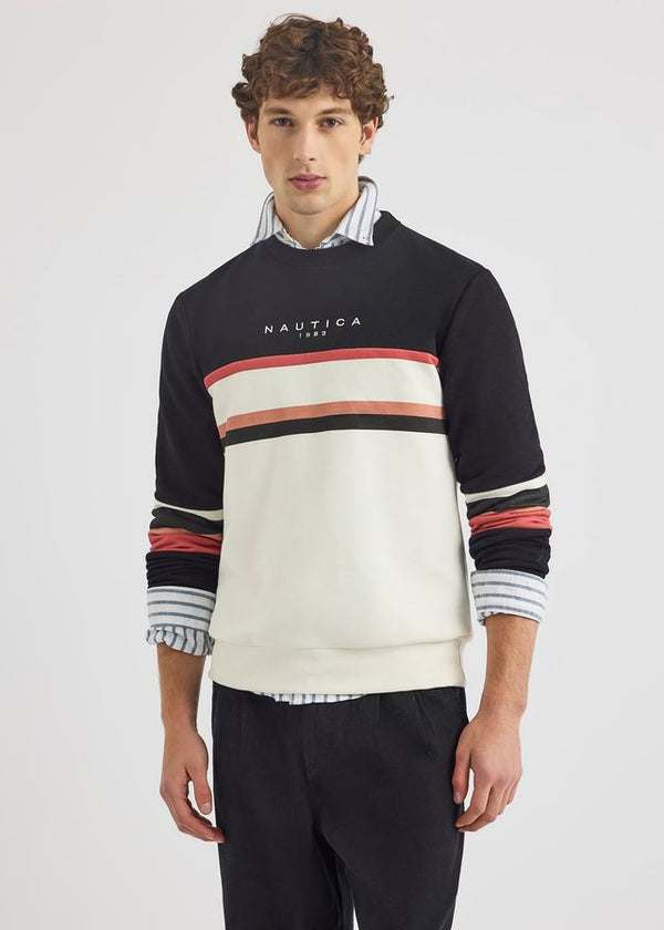 The Dune Sweatshirt is your go-to layer for effortless off-duty style. Made from a soft brushed-back cotton blend, it delivers cosy warmth without compromising breathability. The bold horizontal stripes, embroidered Nautica 1983 logo, and cut-and-sew panel detailing create a timeless, sporty look perfect for year-round wear.