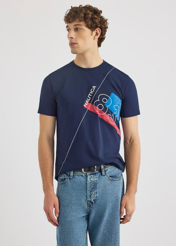 The Kaiwi T-Shirt.Contemporary graphic tee featuring bold "1983" print with dynamic color-blocking that celebrates Nautica's heritage with modern flair. Crafted from comfortable cotton jersey with water-based print technology for superior durability and soft hand feel. The classic crew neck silhouette and statement graphic create an effortlessly cool look for casual styling.