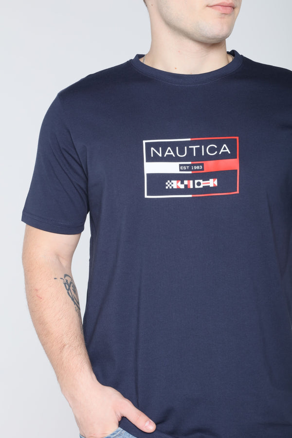 The Alves T-Shirt. This standard fit cotton tee is perfect for everyday wear. Featuring a ribbed neckline to ensure comfort and a crew neck design, the tee is complete with Nautica flag print to the chest.