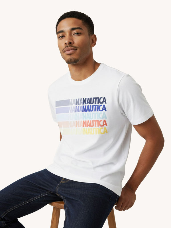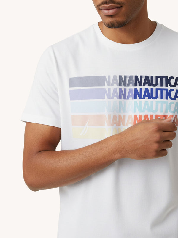 The Artis T-Shirt. Upgrade your casual wardrobe with this standard fit tee. Crafted from high quality jersey cotton and designed for all day comfort, the short sleeve t-shirt features a classic crew neck design and ribbed neckline. Finished with Nautica printed graphic on the chest.