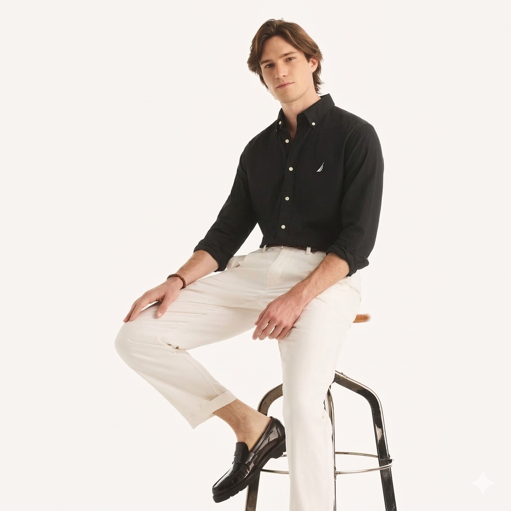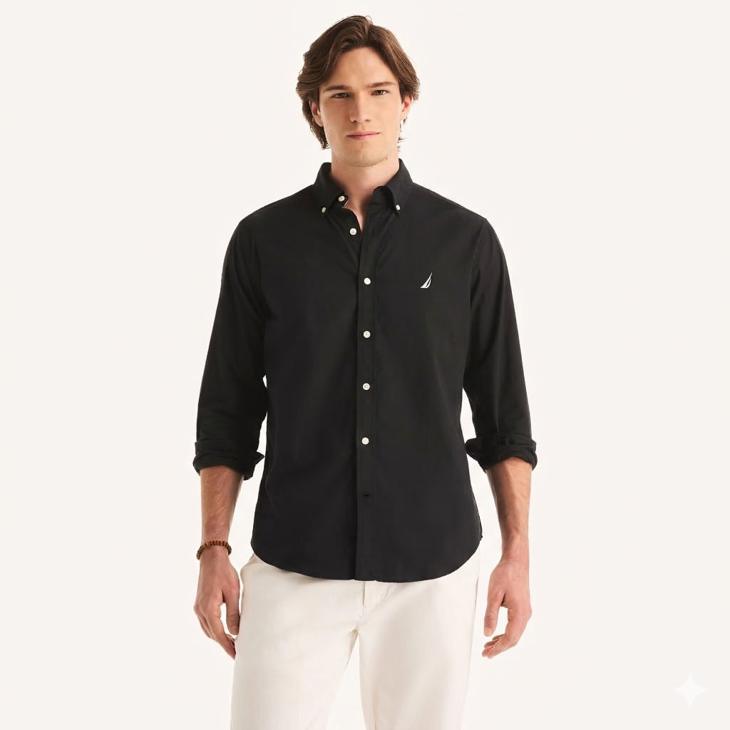 The Mast Long Sleeve Shirt is a refined wardrobe essential that seamlessly blends classic tailoring with nautical-inspired details. It is crafted from a premium poplin fabric providing a crisp appearance with a comfortable hint of stretch for ease of movement. This sophisticated button-down features an inner collar stand and inner placket trim, adding a subtle touch of textured detail. It is finished with the iconic embroidered logo on the chest and high-quality branded buttons for a signature look.